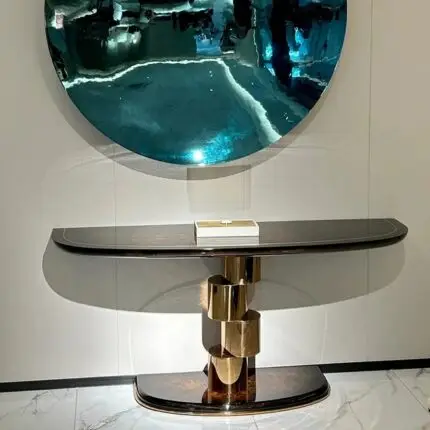 Modern Noir D'Design wood and Stainless Steel Gold Console Table ₹145,998.08 ₹96,298.00 Exclusive of taxes.