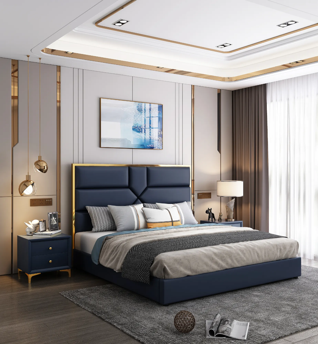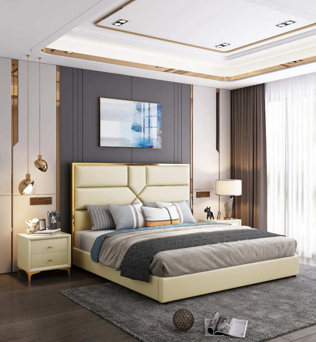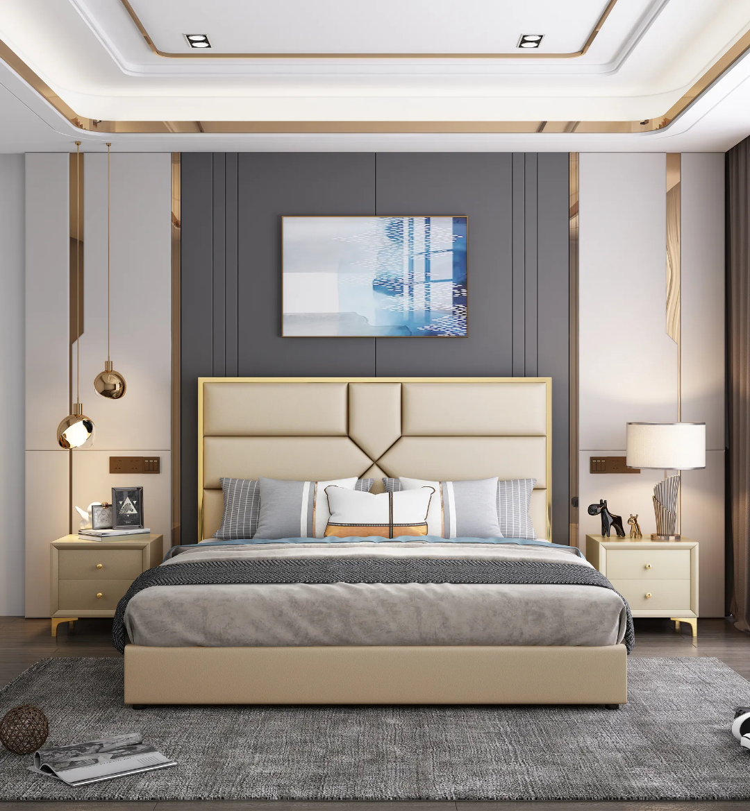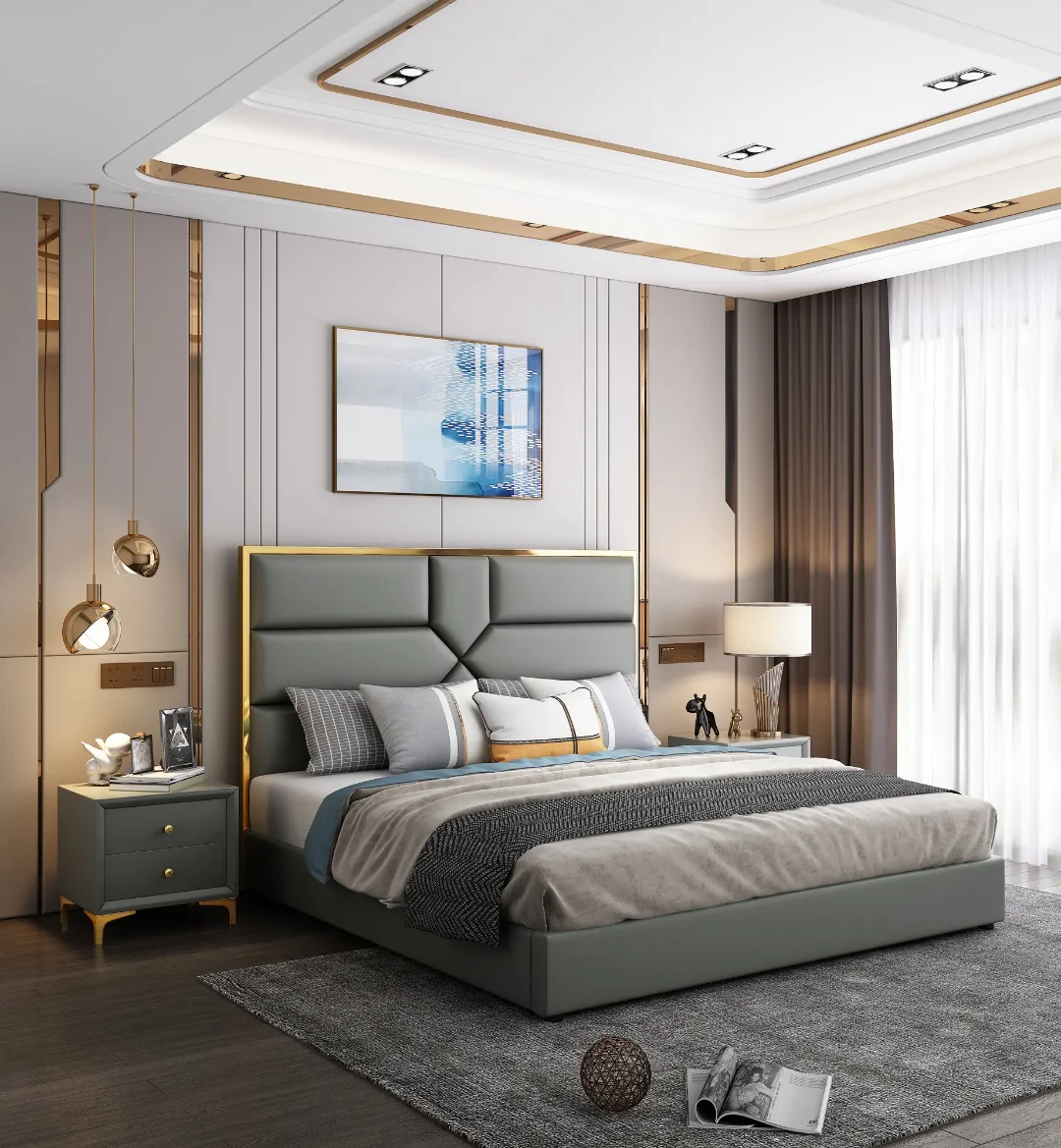 Modern Design High quality Engineered wood Bedroom Furniture light luxury King bed