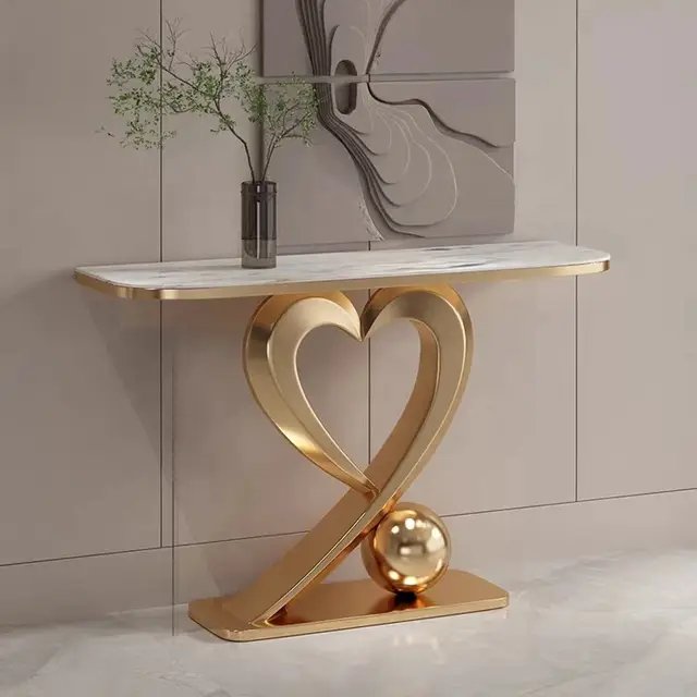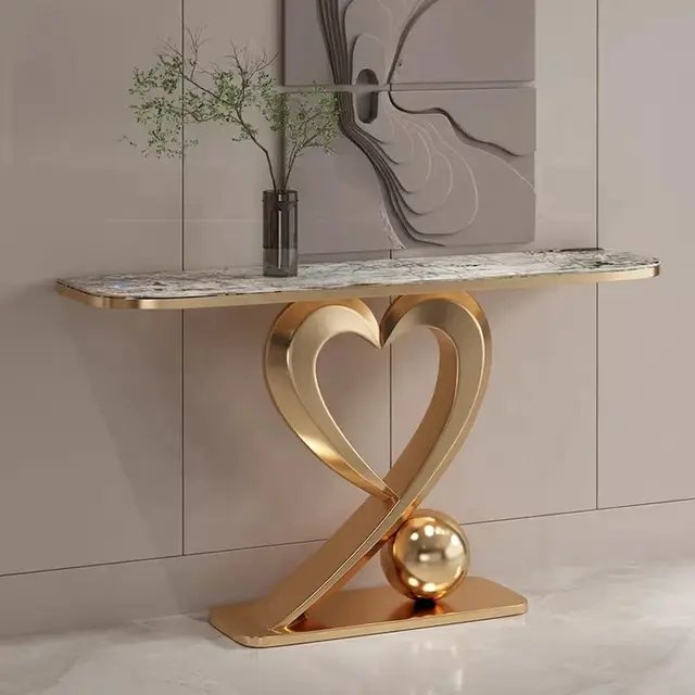 Home Furniture TABLES AND CONSOLES Console Tables Fresca Stunning Stainless Steel Console Table with Heart-Shaped Base