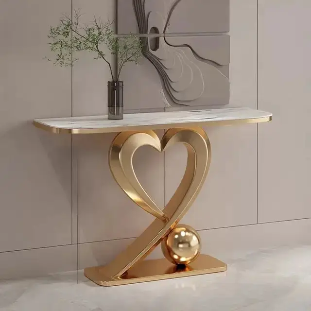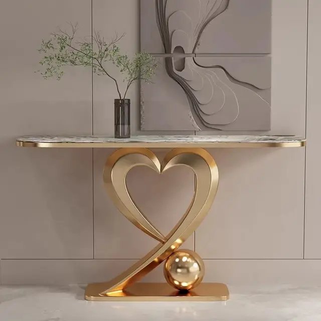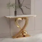 Transform your living space with the sophisticated Frescon Stainless Steel Console Table, featuring a luxurious marble top and a unique heart-shaped base. This console table seamlessly blends modern design with timeless elegance, making it a perfect addition to any home or hotel setting.