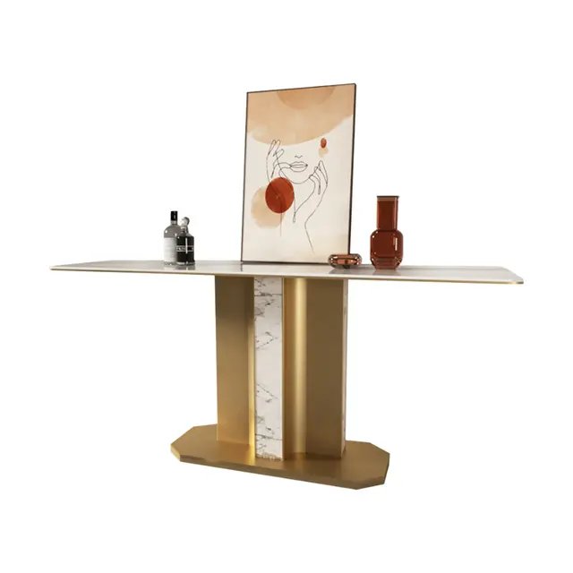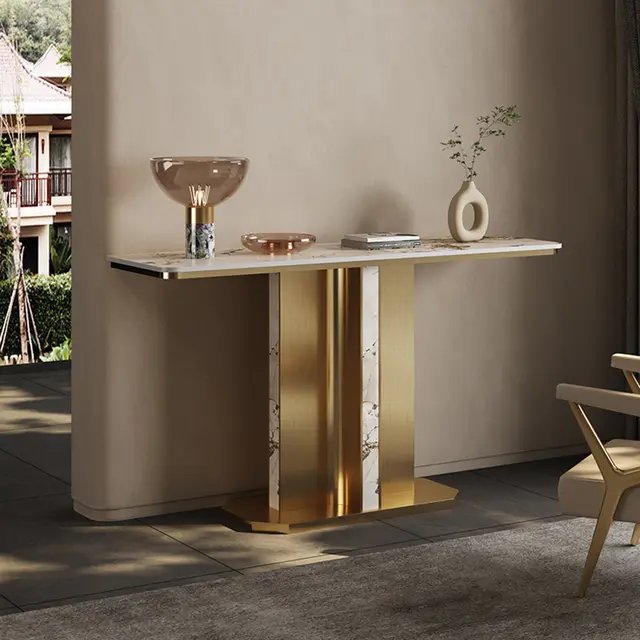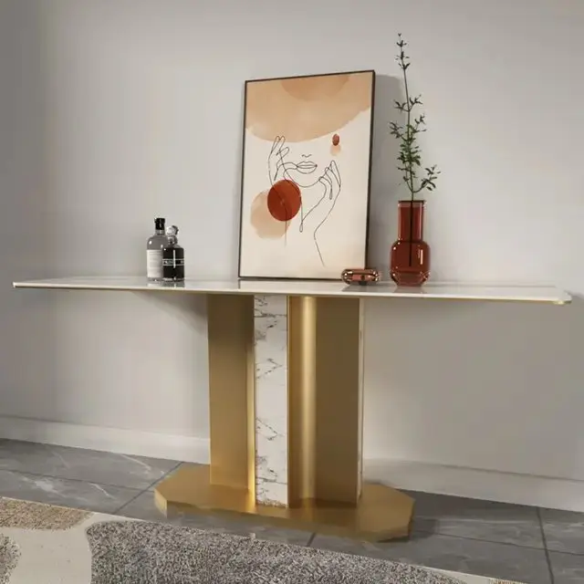 Sodexo Console Table Modern Maximalist Design Gold Finish Marble Top Console Table