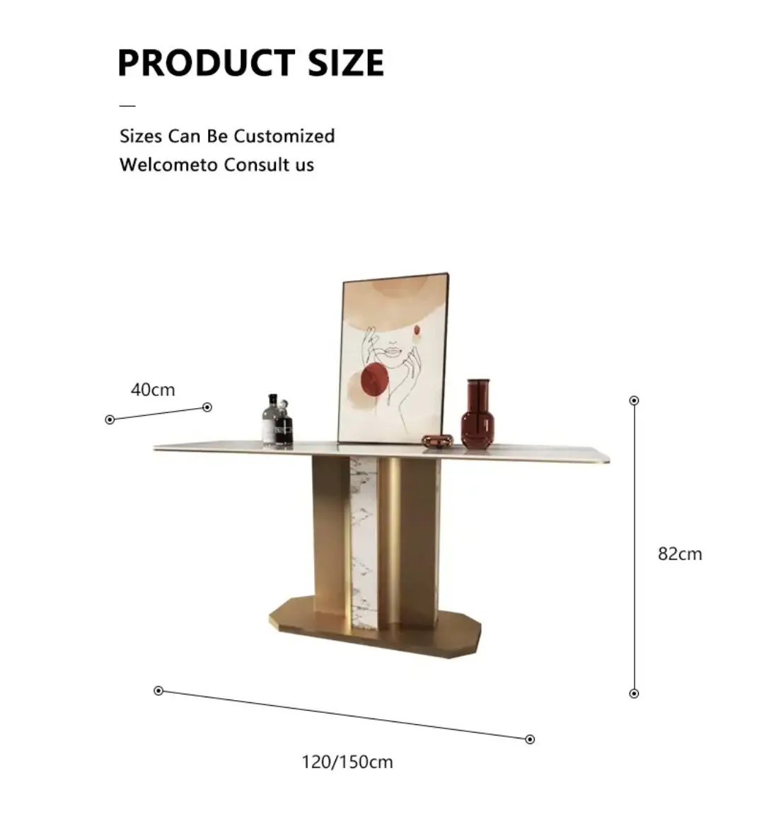 With dimensions measuring W*D*H: 150*40*80 cm, this console table offers ample space for your decorative items, be it in your entryway, living room, or any space you desire. It’s as functional as it is visually striking.