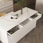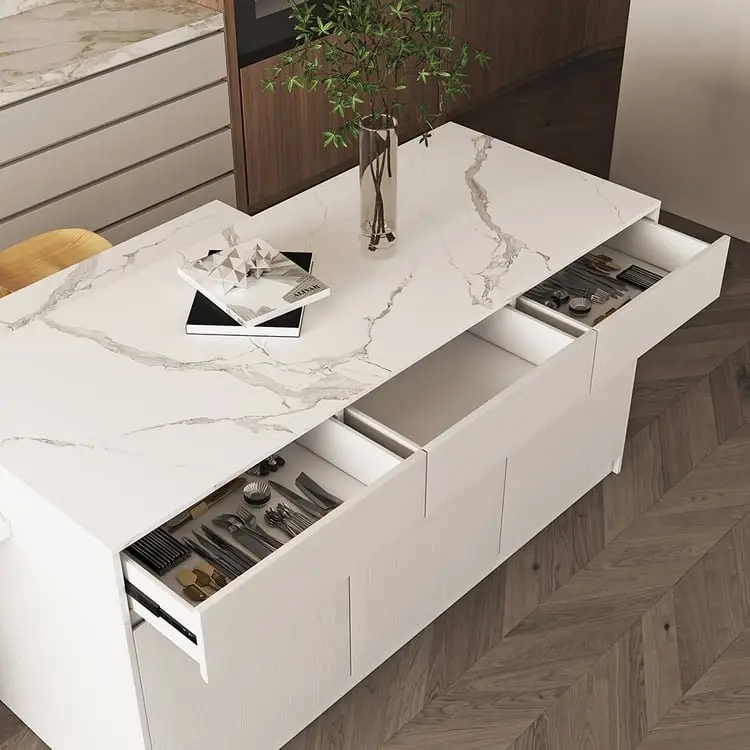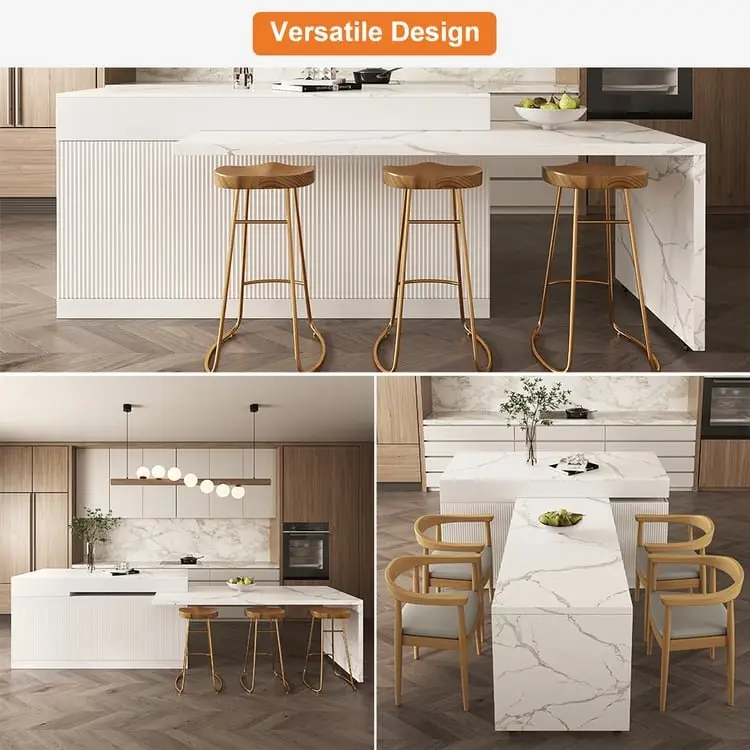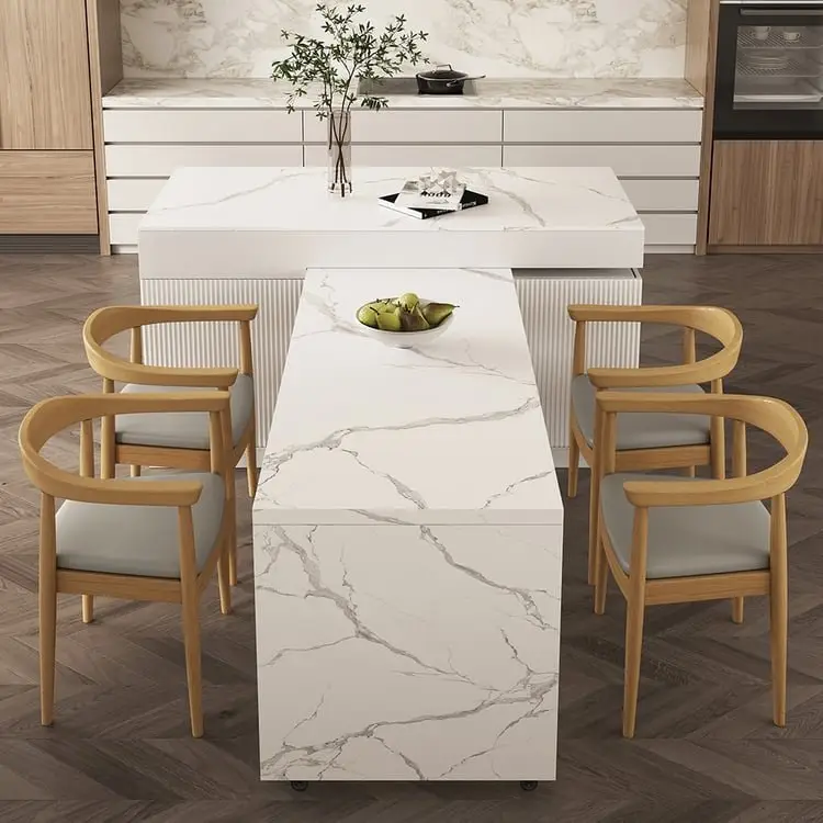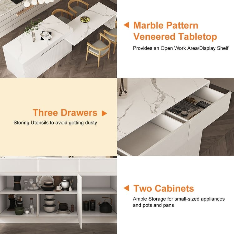 Step into the future of luxury living with our 81”-106″ Modern Extendable Marble-Pattern Kitchen Island — a centerpiece that redefines elegance, functionality, and space optimization. Designed for modern homes, this isn’t just a kitchen island; it’s a statement of class and innovation, perfect for premium 2BHK apartments and lifestyle-focused homeowners.