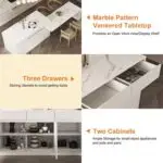 • Elegant Marble Finish: Features a high-grade, engineered white marble-patterned top that exudes luxury and withstands everyday wear.