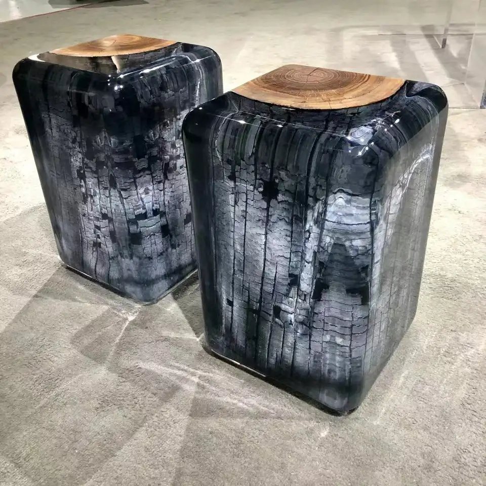 Home Furniture TABLES AND CONSOLES End Tables Nexa Pair of Resin and Wooden Modern Side Tables