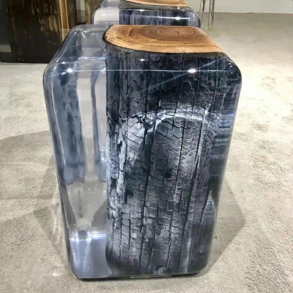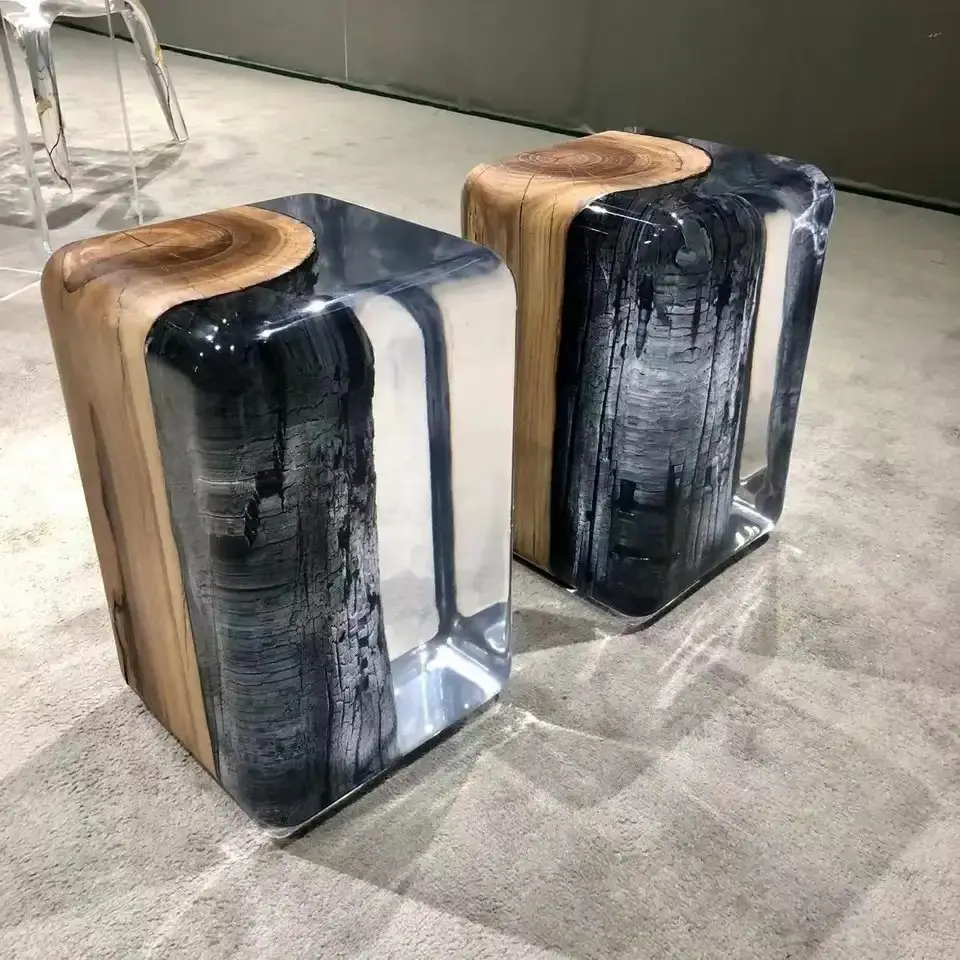 Resin and wooden finish: The captivating resin top exudes warmth and sophistication, while the wooden base adds a touch of natural charm.