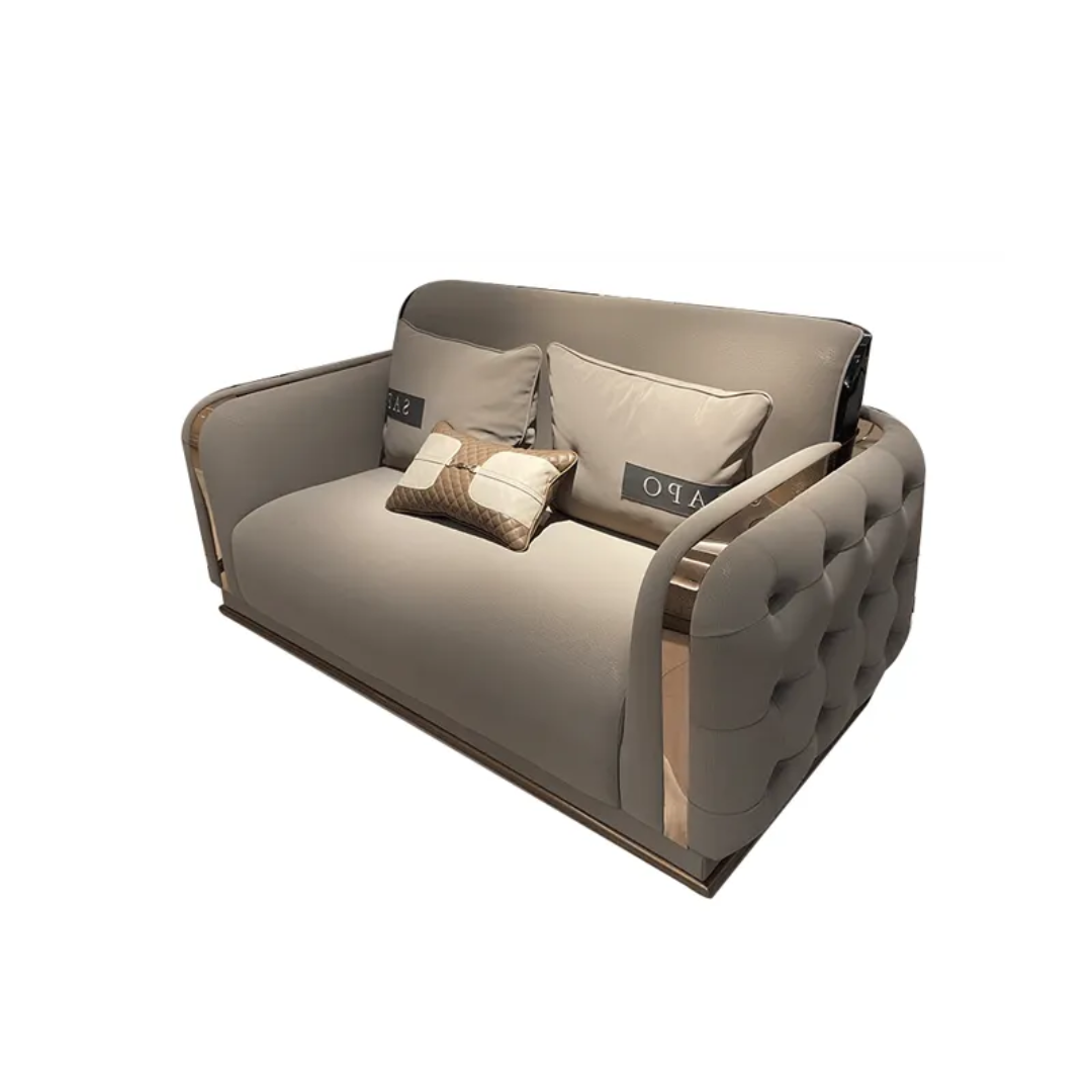 The Noah Modern White Luxurious Velvet leather Sofa: Elegant 5-Seater Living Room Set is constructed from the finest materials, featuring a robust steam beech wood structure that guarantees durability and stability. The addition of a stainless steel PVD coated legs adds a touch of modern elegance and resilience, ensuring that this sofa remains a timeless piece in your home décor.