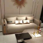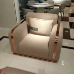 Upholstered in sumptuous velvet, this sofa set presents a visually striking contrast with its bold beige or white color, adding a vibrant and chic element to any interior design. The dimensions of W*D*H: 220*86*74 cm and a comfortable seat height of 47 cm, along with its significant weight of 93 Kg, underscore the sofa’s substantial build and quality craftsmanship.