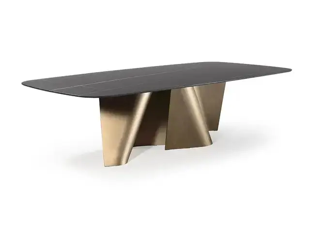 Rendezvous Dining Table Stainless Steel Golden Leg + Natural Marble Top Table