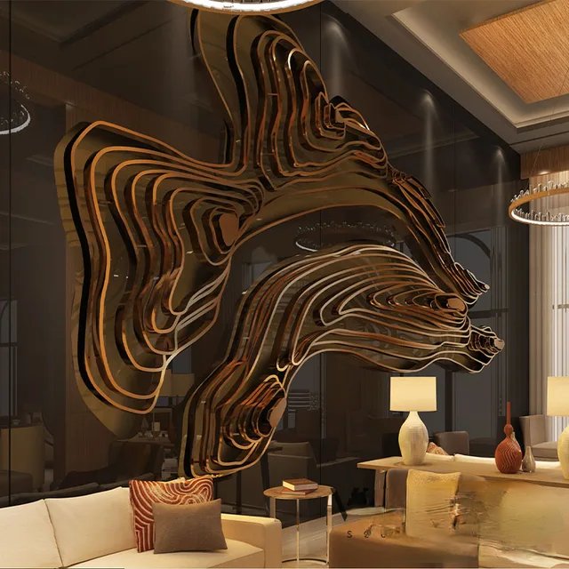 Perfect for upscale interiors, this art piece is an ideal choice for those looking to make an impactful design statement. Its grand size and eye-catching gold tone make it a focal point of any room, promising to catch the eye and captivate the attention of visitors and clients alike.