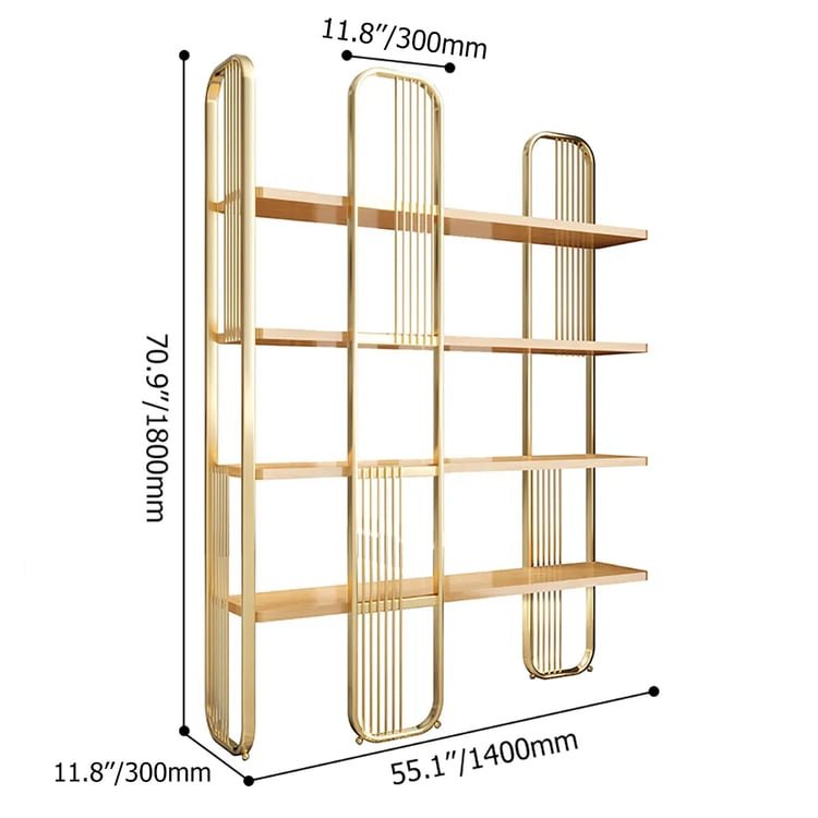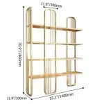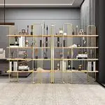 Quality shelving at this scale represents significant investment, justified by substantial size commanding presence, mixed materials requiring skilled manufacturing, gold stainless steel detailing, and furniture serving function while enhancing aesthetics.