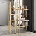 Furniture of this scale typically requires assembly. Expect modular components: vertical side panels, horizontal shelves, support brackets, gold handle attachments, and wall-anchoring hardware.