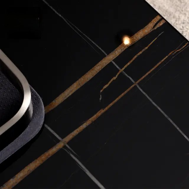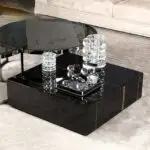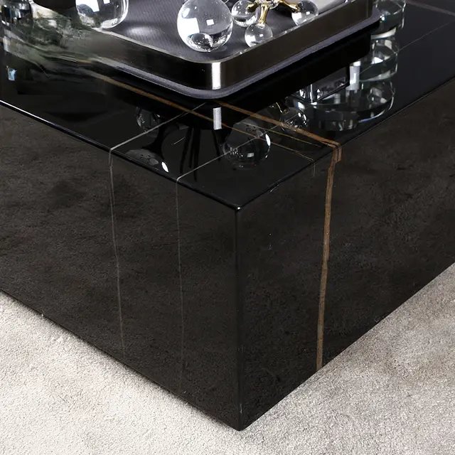 The tabletop is adorned with high-quality black-colored marble veneere, adding a touch of elegance to your home decor. With its lavish size and carefully chosen height, this coffee table strikes the perfect balance between compact design and eye-catching presence.