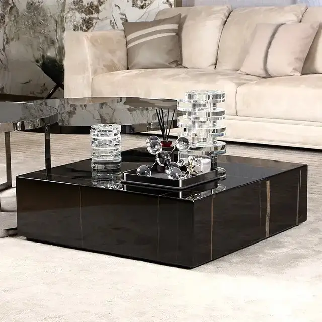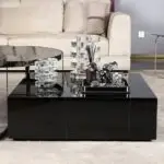 Designed to seamlessly integrate into any room, our coffee table not only serves as a practical surface for your essentials but also enhances the overall aesthetic appeal of your space. The engineered wood base provides a sturdy foundation, while the black veneere top creates a chic focal point.