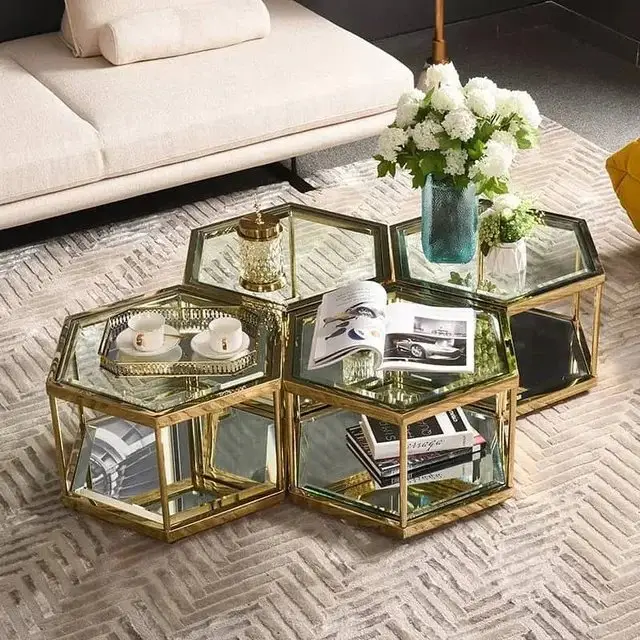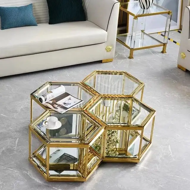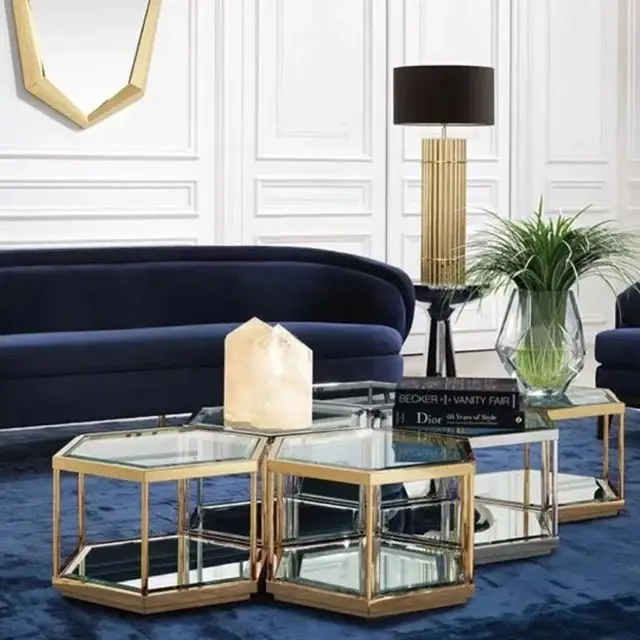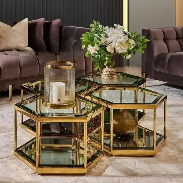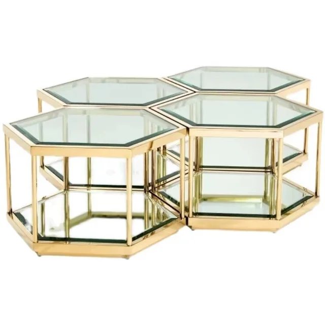 Doris High quality set of 4 coffee table stainless steel frame glass top