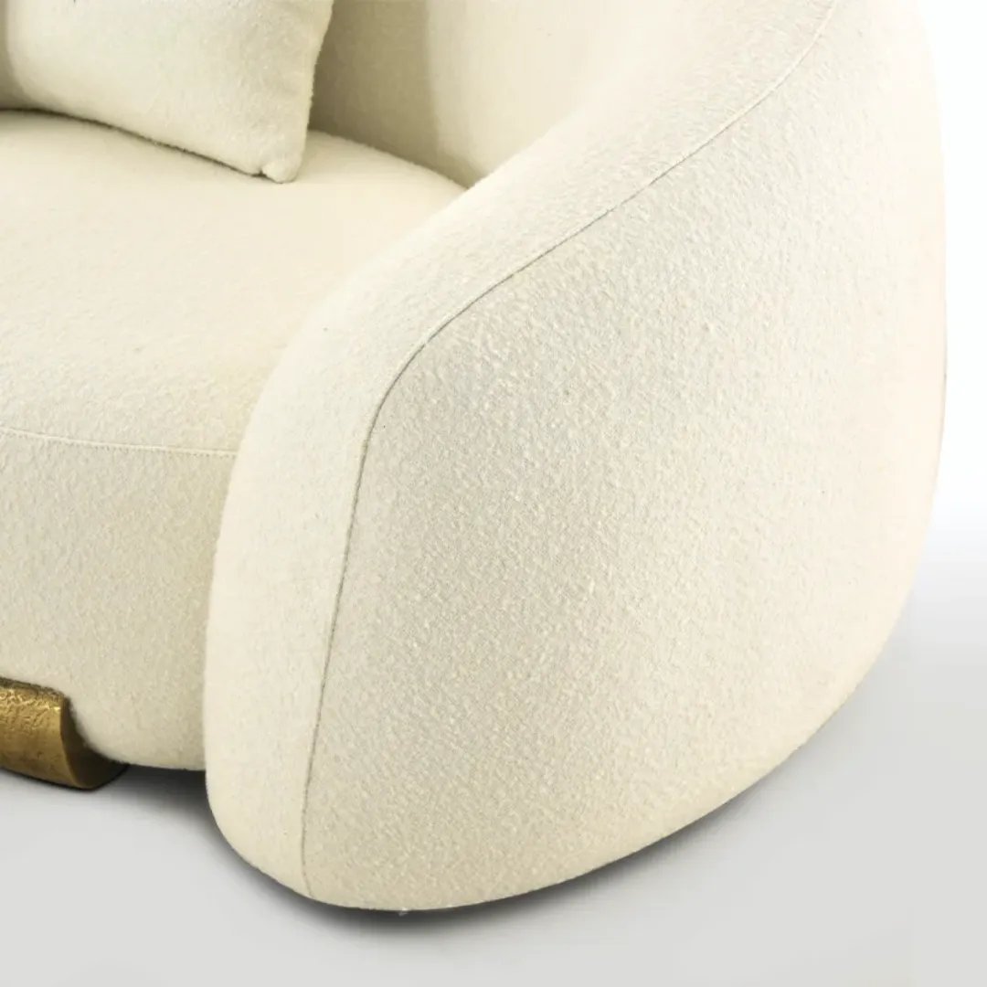 Natural fabric variations may occur. Inspect thoroughly upon delivery for any shipping damage. Gold accent finish may vary slightly from photos due to lighting. Professional fabric protection recommended for light colors. Curved design requires adequate room space – measure carefully before ordering. Warranty details included with purchase.