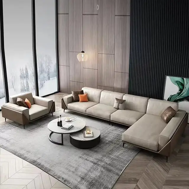 This sofa set features a modern and chic design that adds a touch of sophistication to any living room, hotel lobby, or upscale lounge. Its 5-seater configuration maximizes seating capacity while maintaining a sleek and stylish appearance.