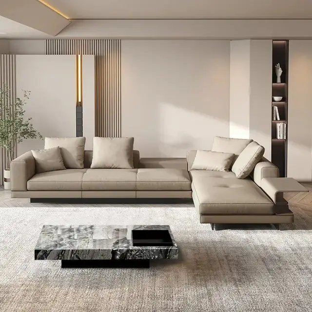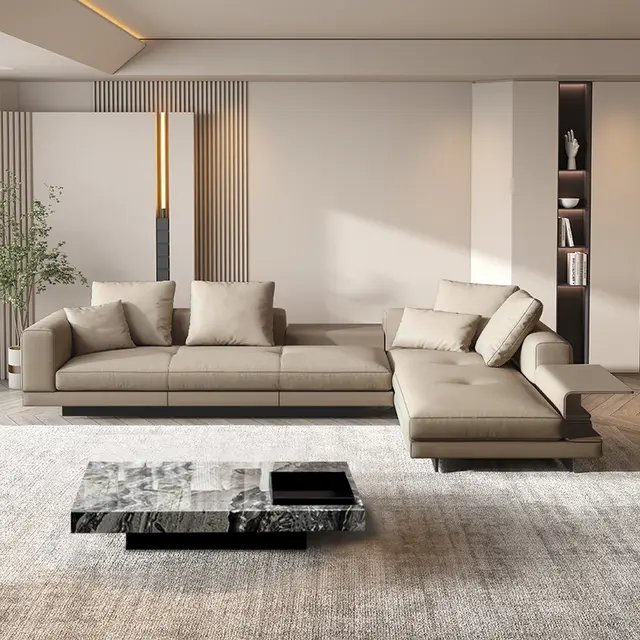 Introducing the “Titanium Elite L-Shaped Sectional Sofa” – the pinnacle of modern design and luxurious comfort, meticulously crafted to transform your living space. This exquisite L-shaped sofa is a masterpiece that seamlessly blends contemporary aesthetics with functionality, making it the ultimate choice for those looking to add a touch of sophistication to their home décor or commercial spaces like hotel lobbies.