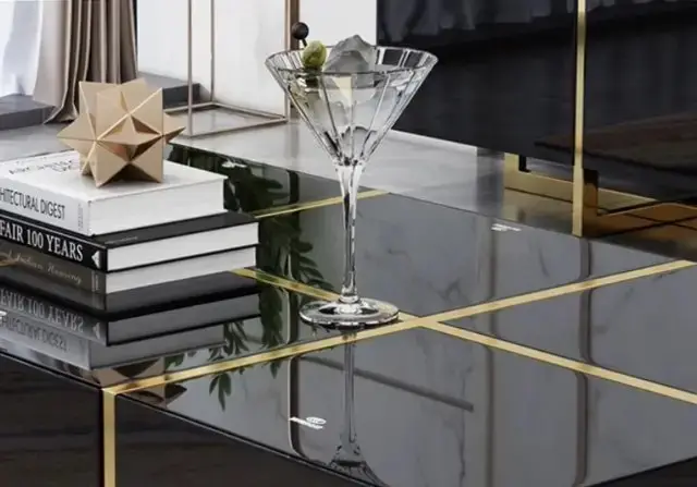 2.Table which match perfectly with the powder-coated gold metal legs. Use this coffee table with an elegant design to complement your living space and become an accent piece in your living room.