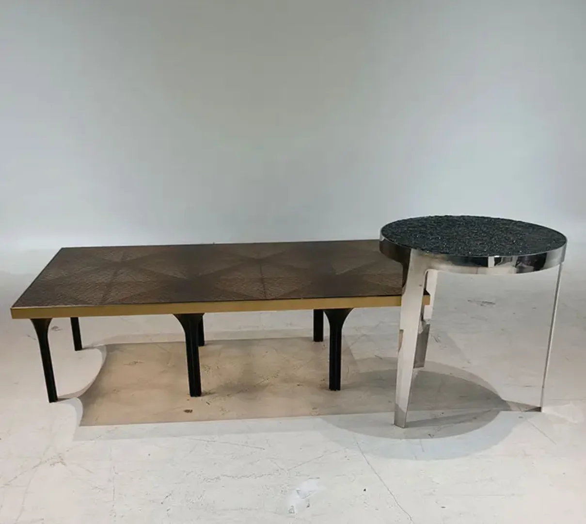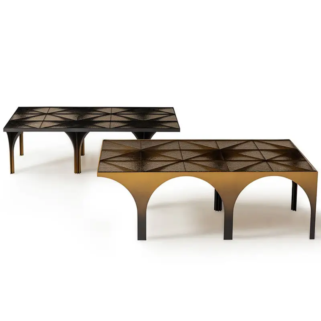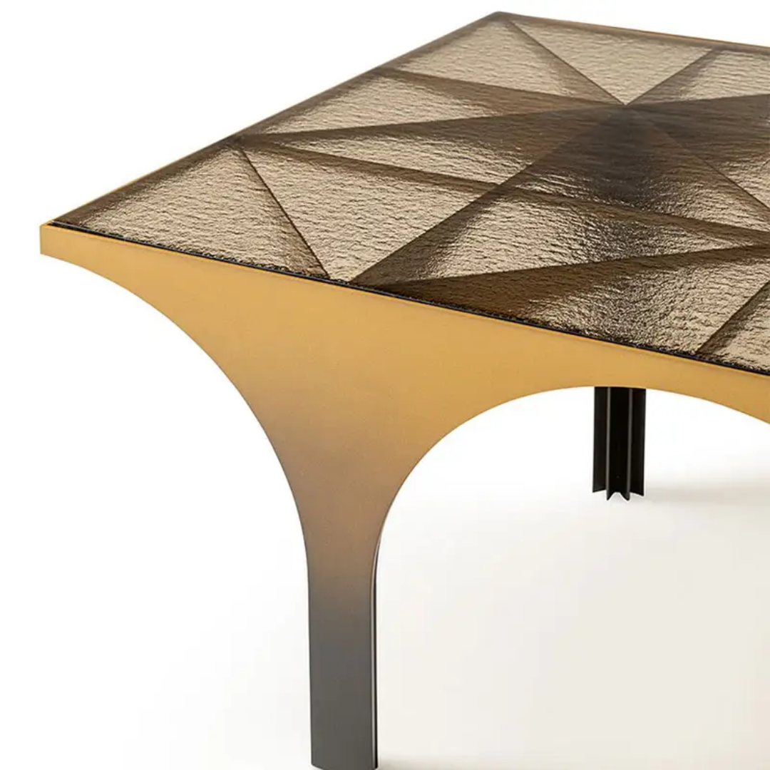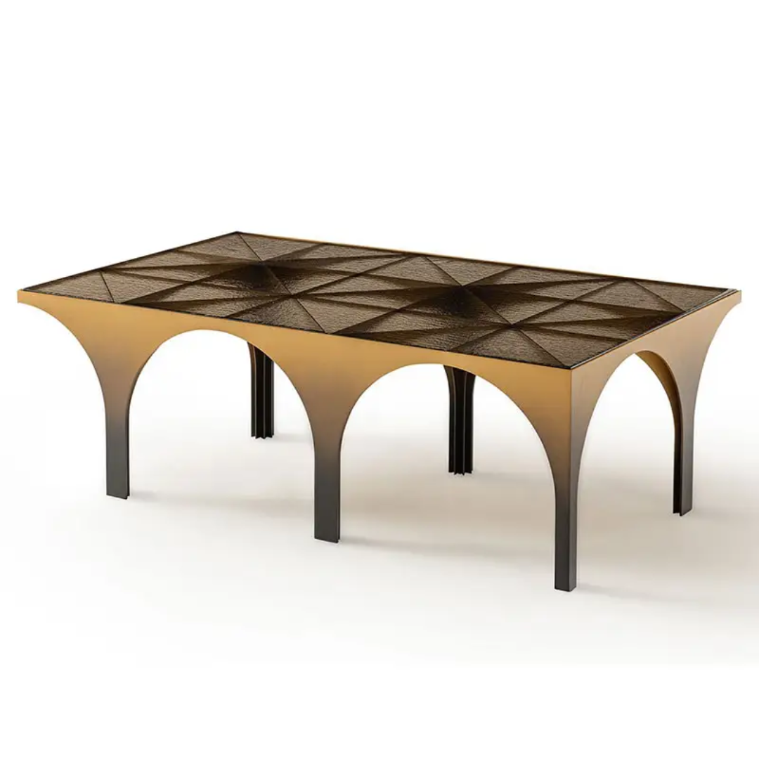 luxury steel coffee table, urban chic coffee table, designer glass top coffee table, modern entryway table, sculptural living room table, contemporary industrial furniture, minimalist steel table, architectural coffee table.
