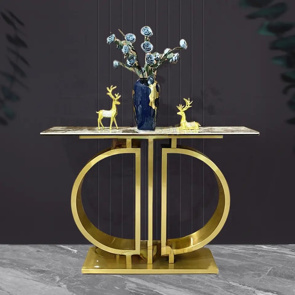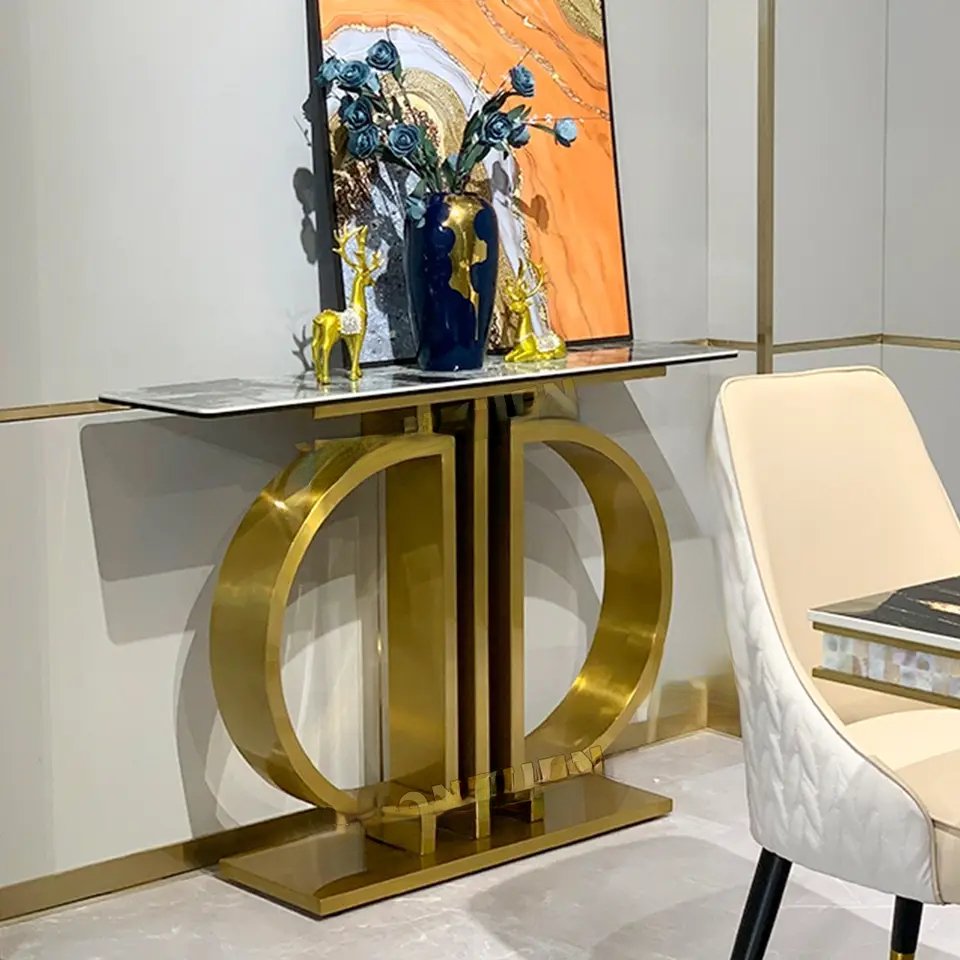 Home Furniture TABLES AND CONSOLES Console Tables Waterloo Faux Marble with Stainless Steel Console Table