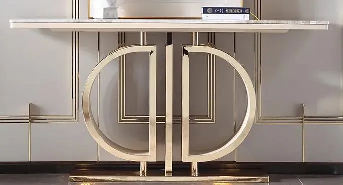 Add a touch of opulence to your home with this White Faux Marble Console Table with Stainless Steel Legs. This versatile piece can be used as an entryway table, sofa table, or accent table in any room of your home. The durable faux marble top is easy to clean and maintain, and the stainless steel legs provide a sturdy and stylish base.