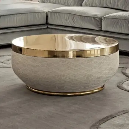 White Luxurious Stainless Steel Gold And PU leather base Coffee Table ₹82,999.85 ₹69,999.85 Exclusive of taxes.