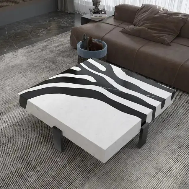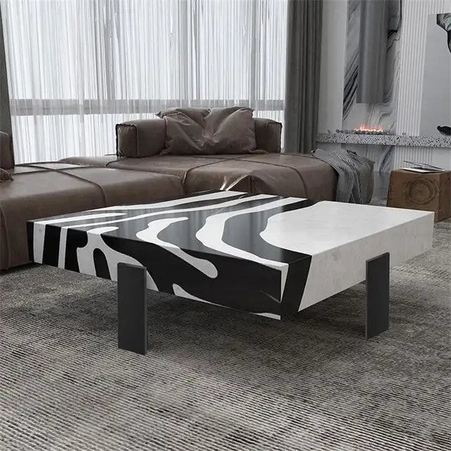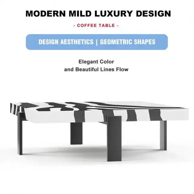Ideal for a variety of settings, this coffee table fits seamlessly into living rooms, hotel lobbies, and office spaces. Its **elegant white and black color scheme** ensures it complements any interior design, while the **geometric shape** adds a touch of modern sophistication.