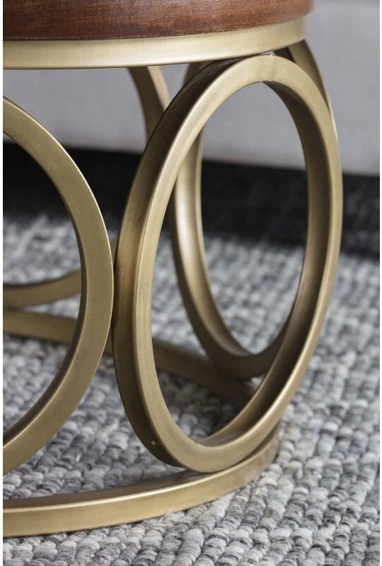Matte Brushed Brass finish adds a striking contrast with solid wood top.
