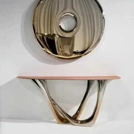 ₹86,410.00 Exclusive of taxes.Venisa Stainless Steel Console Table with Marble Top – Modern Luxury for Your Home