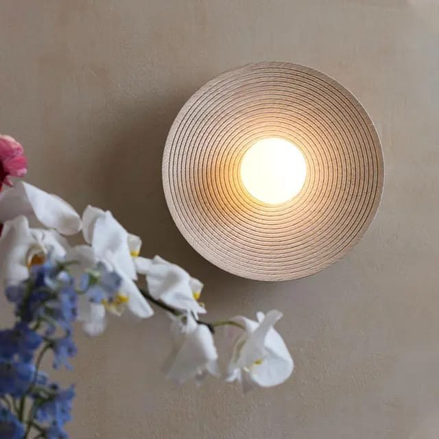 Retro Japanese Style Circle Wall Lamp, Round Striped Light Plate Led Wall Lamp