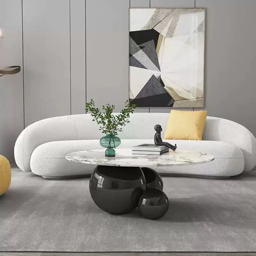 Add a striking statement piece to your living space with the Ballsbridge Coffee Table, a masterclass in contemporary artistry and refined craftsmanship. This iconic centerpiece features a bold circular form, where precision-polished stainless steel joints fuse with sleek metal spheres—creating a seamless illusion of weightless balance and fluid structure.