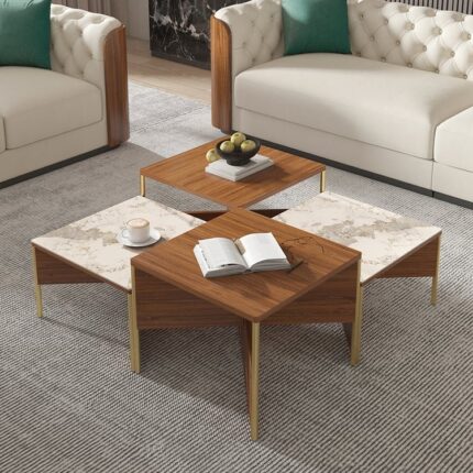 ₹128,345.00 Exclusive of taxes.Crosby Premium Walnut & Stone Low Coffee Table – Modern Elegance for Sophisticated Living